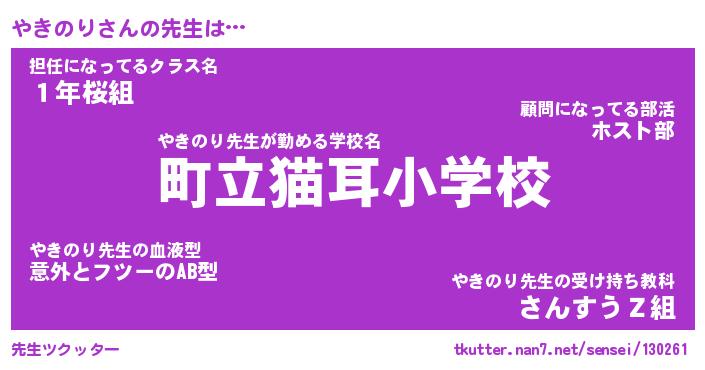 | ヒーロー風カッコイイあだ名 | 『スーパーヤキノリ』『暗黒騎士ヤキ』 |