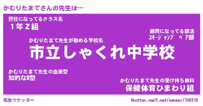 | ヘコむあだ名 | 『かむっふぃ~』『牛乳』『かむ太郎』 |