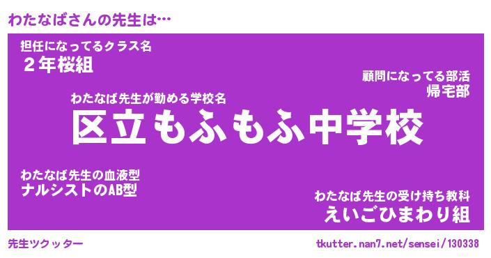 | ポケモン風あだ名 | 『ワタチュウ』『ワタナダネ』 |