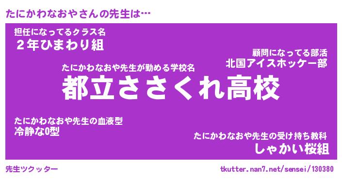| ヘコむあだ名 | 『たにもー』『なまこ酢』『たにを』 |