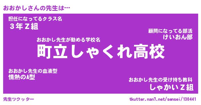 | ファンタジー風あだ名 | 『オオフェル』『エターナルオオカシー』 |