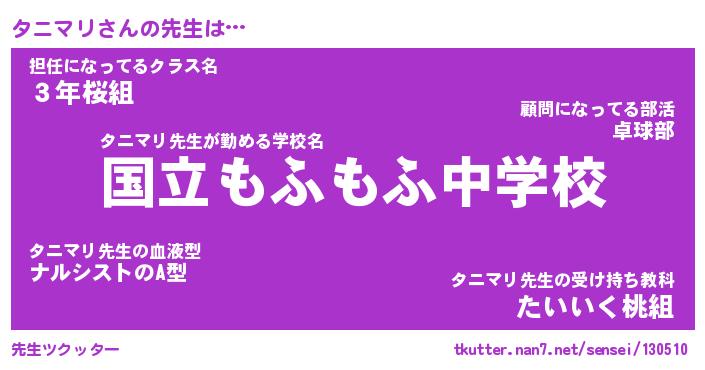 | 意味不明あだ名 | 『ペロリンタニマリ』『永久保存タニマリ』 |