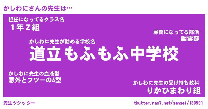| 意味不明あだ名 | 『ペロリンかしわに』『永久保存かしわに』 |