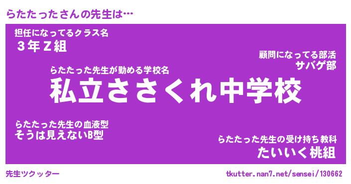 | ヒーロー風カッコイイあだ名 | 『スーパーラタタッタ』『魔戒騎士ラタ』 |