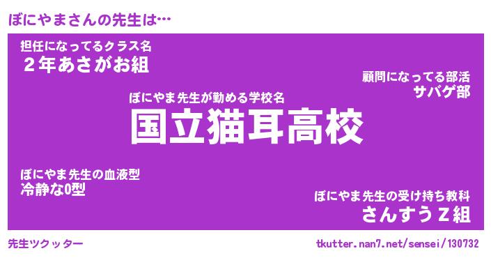 | ヘコむあだ名 | 『ぼににー』『なまこ酢』『ぼにお』 |