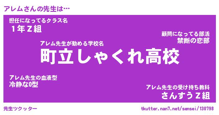 | ファンタジー風あだ名 | 『アレフェル』『エターナルアレムー』 |