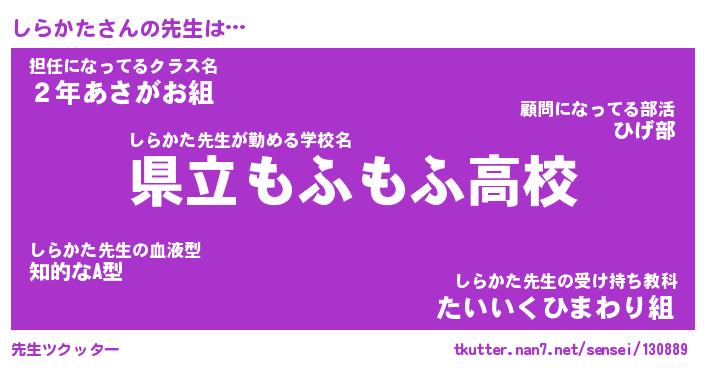 | 意味不明あだ名 | 『ペロリンしらかた』『永久保存しらかた』 |