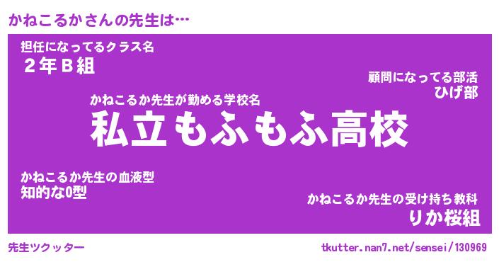 | ヘコむあだ名 | 『かねにゅー』『なまこ酢』『かねを』 |