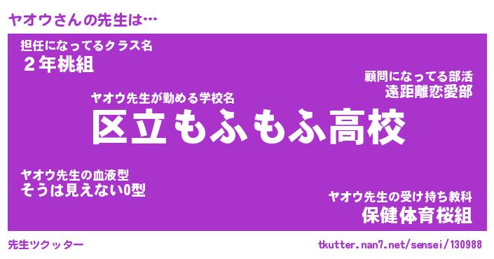 | ファンタジー風あだ名 | 『ヤオフェル』『エターナルヤオウー』 |