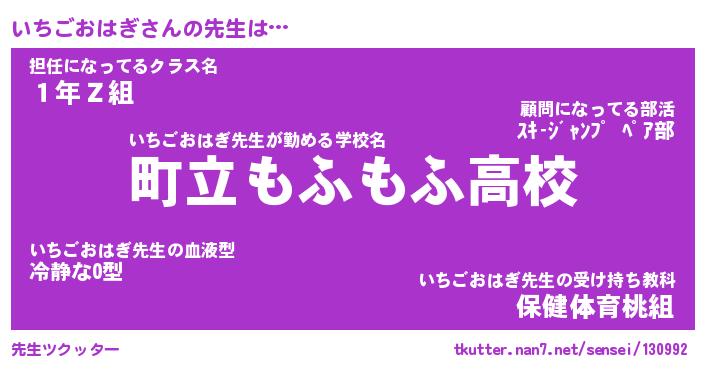 | 肩書あだ名 | 『いちごおはぎ店長』『いちごおはぎ担任』 |