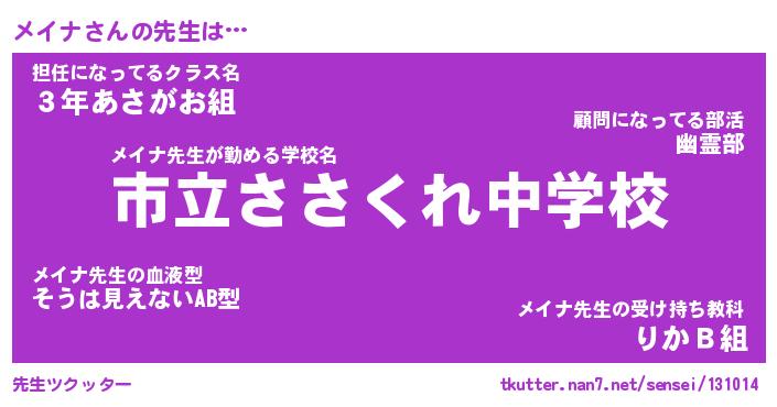 | ヒーロー風カッコイイあだ名 | 『スーパーメイナ』『ウルトラメイナマン』 |