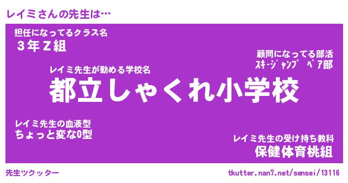 | ヘコむあだ名 | 『レイっふぃ~』『つくし』 |