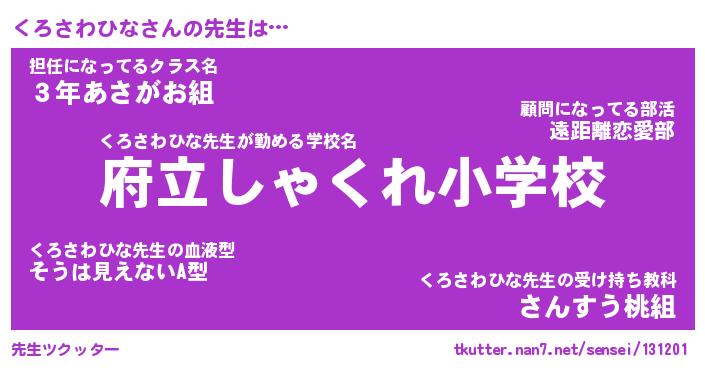 | ヒーロー風カッコイイあだ名 | 『スーパークロサワヒナ』『暗黒騎士クロ』 |