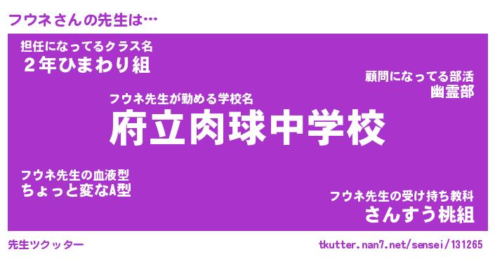 | ヒーロー風カッコイイあだ名 | 『スーパーフウネ』『ウルトラフウネマン』 |