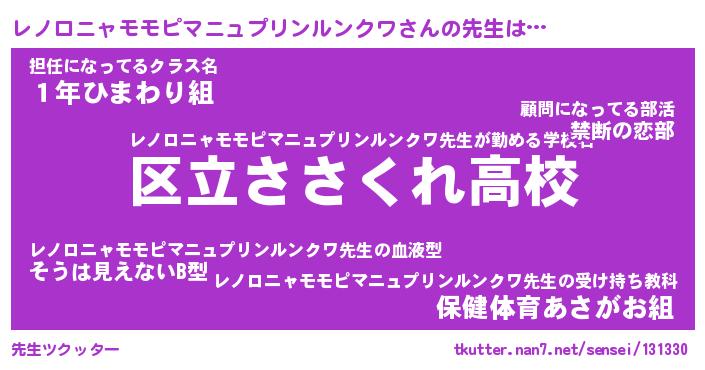 | 伝説のあだ名 | 『封印されしスナイパーレノロニャモモピマニュプリンルンクワ』 |