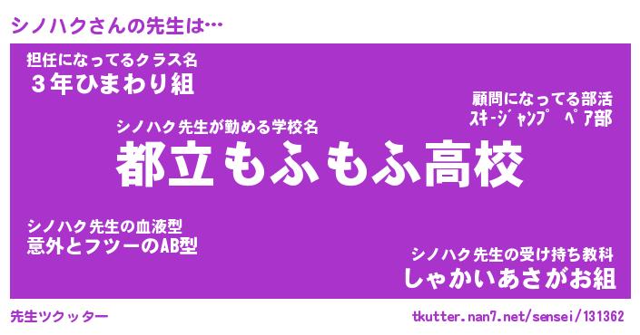 | 意味不明あだ名 | 『ペロリンシノハク』『永久保存シノハク』 |