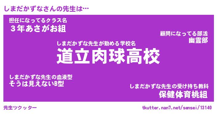 | ヘコむあだ名 | 『しまふぇ~』『酢こんぶ』 |