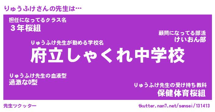 | ヒーロー風カッコイイあだ名 | 『スーパーリュウフケ』『幻影騎士リュ』 |