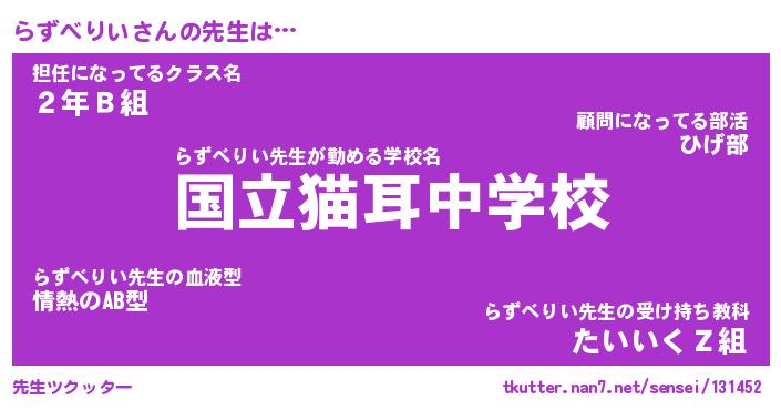 | ヘコむあだ名 | 『らずにー』『なまこ酢』『らずを』 |