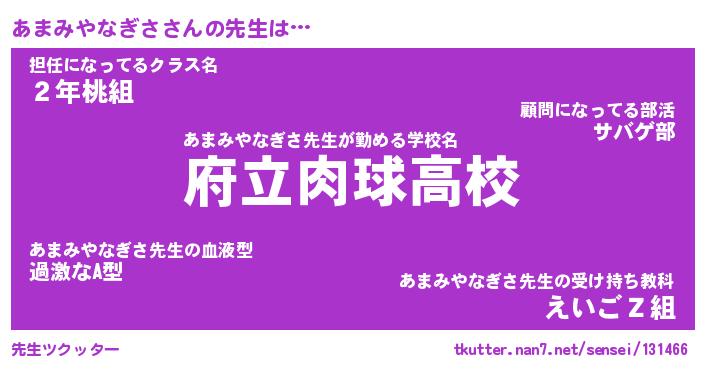 | ヘコむあだ名 | 『あまふぇ~』『牛乳』『あまを』 |