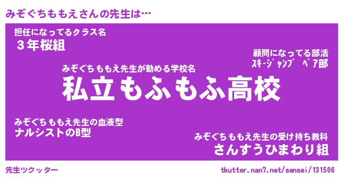 | 恥ずかしいあだ名 | 『プリティーみぞぐちももえ』『みぞちん』 |