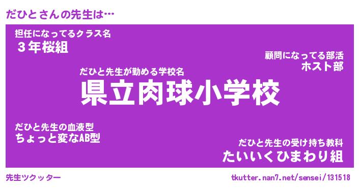 | 意味不明あだ名 | 『ペロリンだひと』『だひとフォーエバー』 |