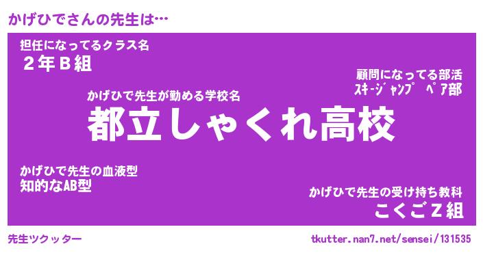 | 2回繰り返すあだ名 | 『かげかげ』『かかげげ』『なあなあ』 |