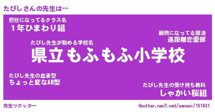 | ヘコむあだ名 | 『たぴにゅー』『つくし』 |