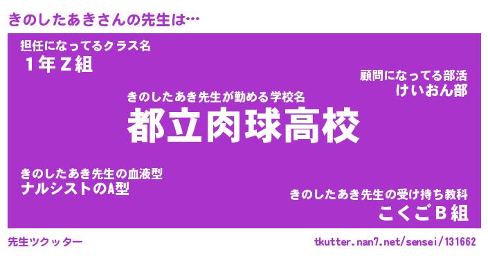 | ヒーロー風カッコイイあだ名 | 『スーパーキノシタアキ』『暗黒騎士キノ』 |