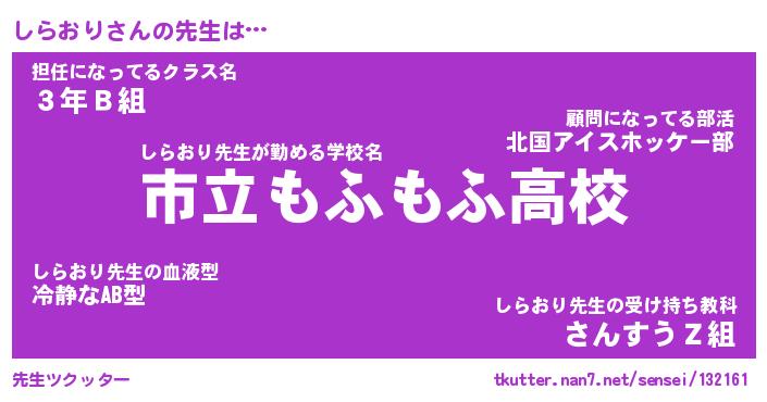 | ファンタジー風あだ名 | 『シラフェル』『エターナルシラオリー』 |