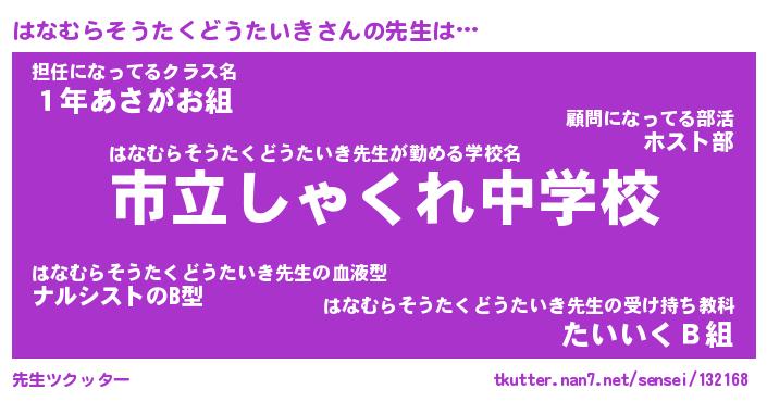 | ヒーロー風カッコイイあだ名 | 『スーパーハナムラソウタクドウタイキ』 |