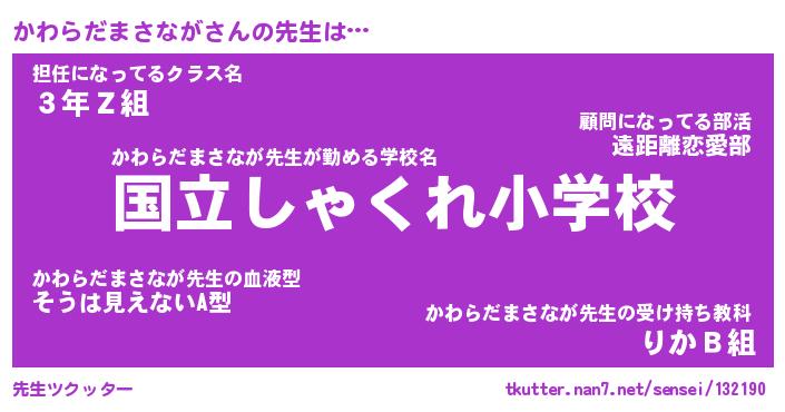 | 肩書あだ名 | 『かわらだまさなが御曹司』 |