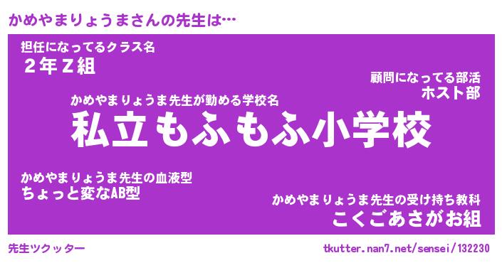 | ヘコむあだ名 | 『かめにゅー』『豆乳』『かめを』 |