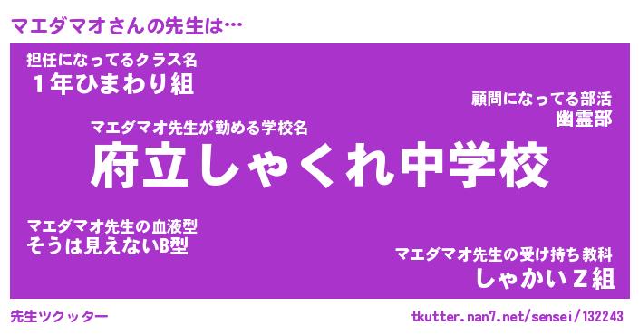 | ファンタジー風あだ名 | 『マエフェル』『エターナルマエダマオー』 |