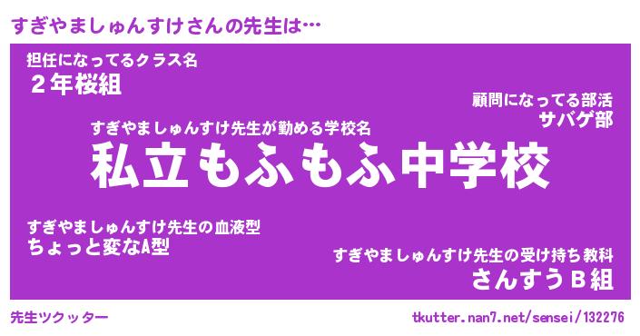 | ヘコむあだ名 | 『すぎにゅー』『なまこ酢』『すぎお』 |
