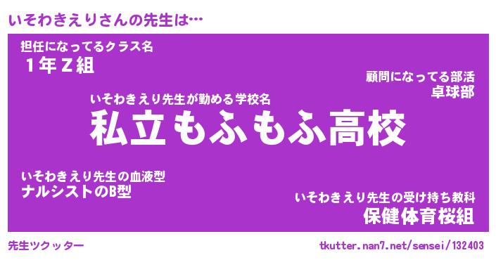 | ヘコむあだ名 | 『いそにゅー』『酢こんぶ』『いそを』 |