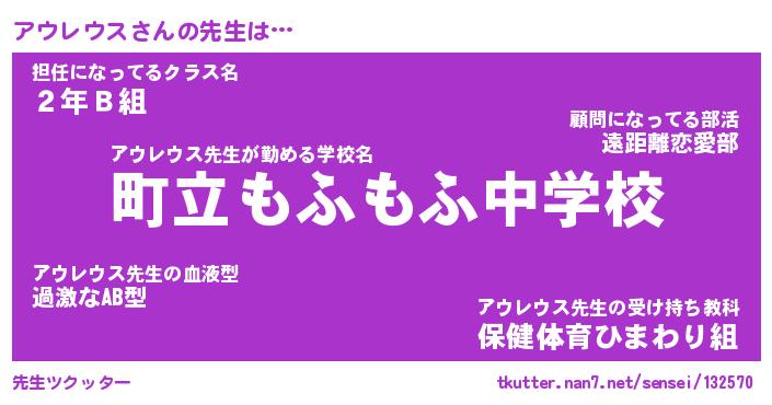 | 肩書あだ名 | 『アウレウス店長』『アウレウス大統領』 |