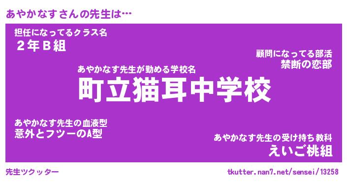 | ヘコむあだ名 | 『あやにー』『なまこ酢』『あやっ子』 |
