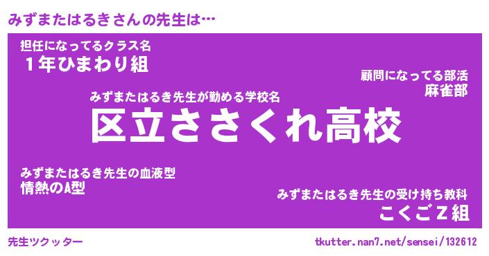 | 伝説のあだ名 | 『封印されしスナイパーみずまたはるき』 |