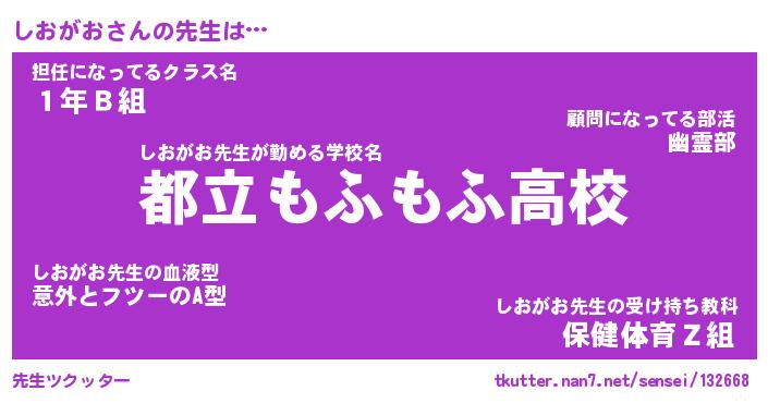 | 意味不明あだ名 | 『ペロリンしおがお』『永久保存しおがお』 |