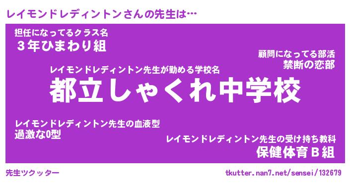 | 男性向けラノベタイトル風あだ名 | 『レイモンドレディントンの憂鬱』 |