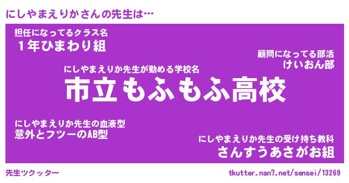 | ポケモン風あだ名 | 『ニシチュウ』『ニシヤダネ』 |