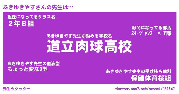 | ヘコむあだ名 | 『あきふぇ~』『酢こんぶ』 |