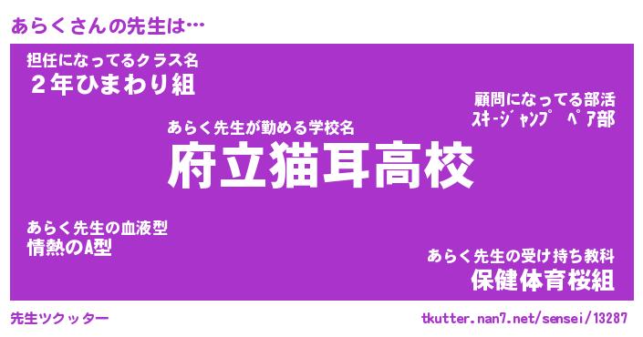| 意味不明あだ名 | 『ペロリンあらく』『あらくフォーエバー』 |