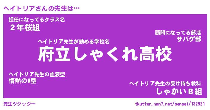 | 恥ずかしいあだ名 | 『プリティーヘイトリア』『ヘイっちょ』 |