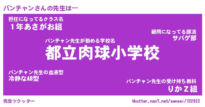 | ポケモン風あだ名 | 『バンチュウ』『バンチダネ』 |