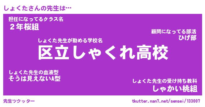 | ポケモン風あだ名 | 『ショチュウ』『ショクダネ』 |