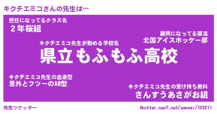 | ヘコむあだ名 | 『キクにゅー』『なまこ酢』 |