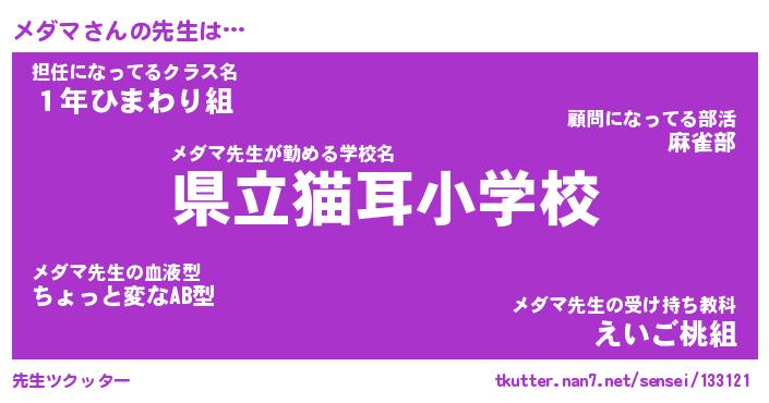 | ヒーロー風カッコイイあだ名 | 『スーパーメダマ』『ウルトラメダママン』 |