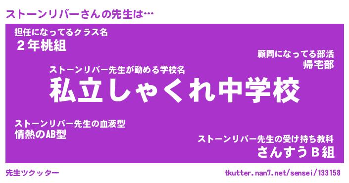 | 男性向けラノベタイトル風あだ名 | 『ストーンリバーの憂鬱』 |